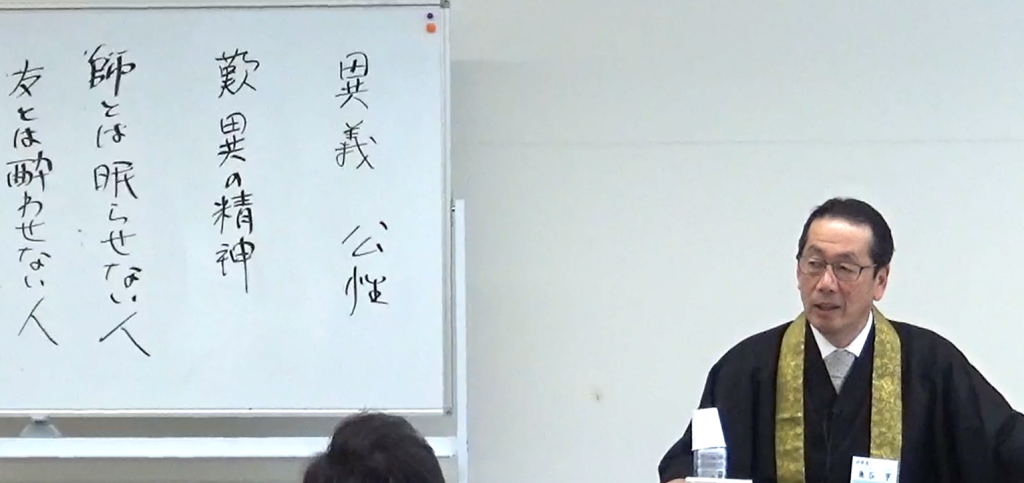 2日目には、相馬豊修練道場長(金沢教区道因寺住職)より課題別講義「教化と伝道」が行われ、真宗大谷派の僧侶として、「私たちは本当に救いを求めているのか」、「私たち一人ひとりにとって報恩講とは何か」といった問いかけがなされました。