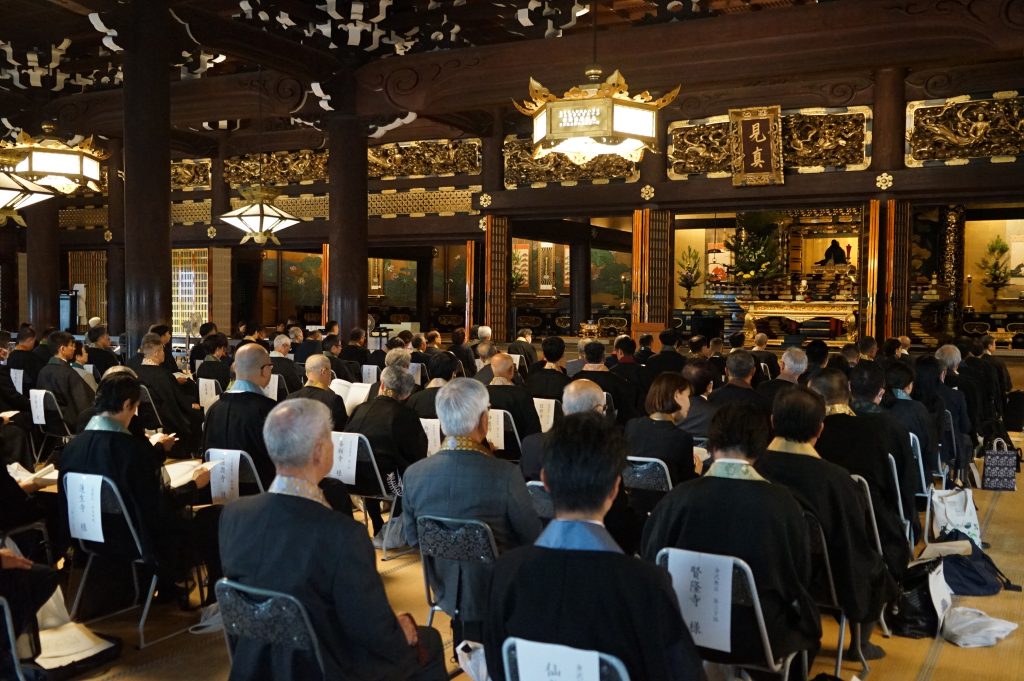 式典終了後には、門首臨席のもと、京都市内のホテルを会場として懇談会が催され、和やかな雰囲気のもと参加者が本願念仏の教えを相続していくことの大切さを確かめる機会となりました。