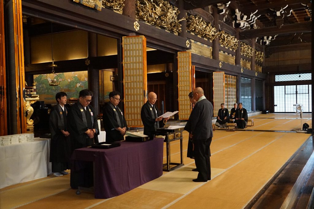 10月3日、御影堂において「連続50ヵ年経常費御依頼額完納寺院表彰状及び記念衣体贈呈式」が執り行われました。