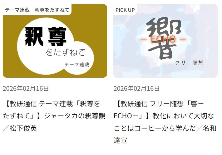 教学研究所では、「浄土真宗ドットインフォ」(しんらん交流館ホームページ)内に、2026年2月より「教研通信」欄を新設しました。そこでは、教学研究所の研究職員による「テーマ連載」と「響―ECHO―」(フリー随想)を設け、毎月15日に更新していきます。