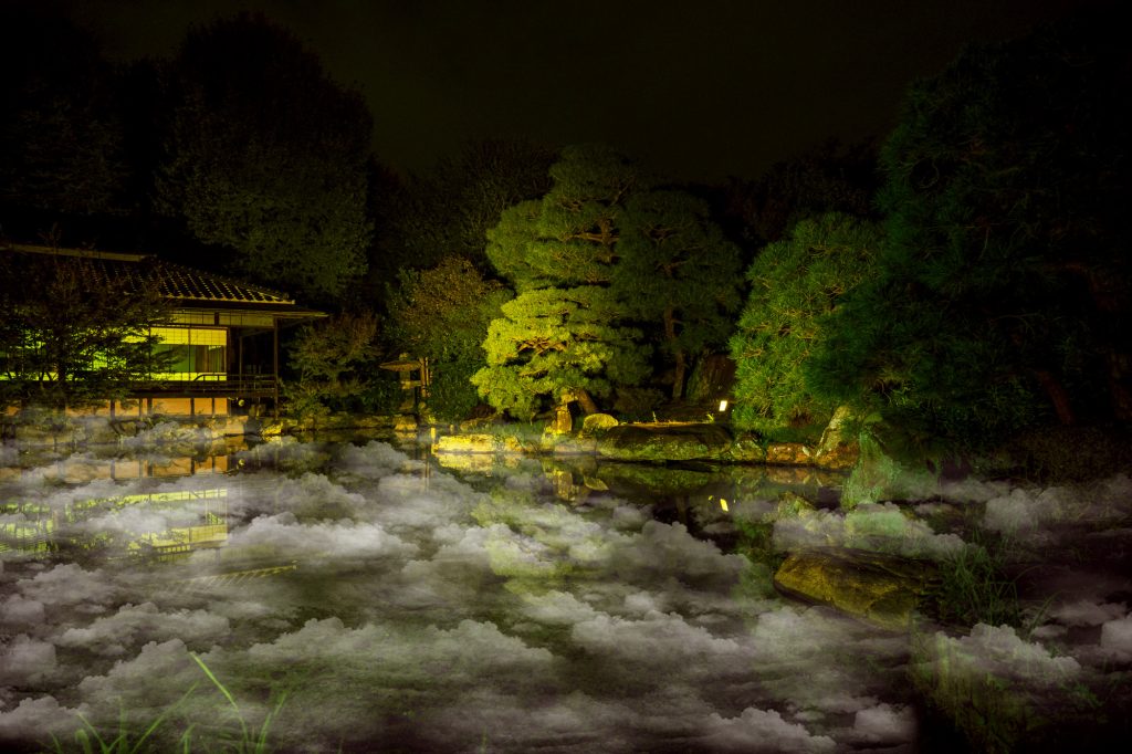 庭園内に雲のように漂う、幻想的に光る雲海を見ることができます。現れては消える雲海をお楽しみください。